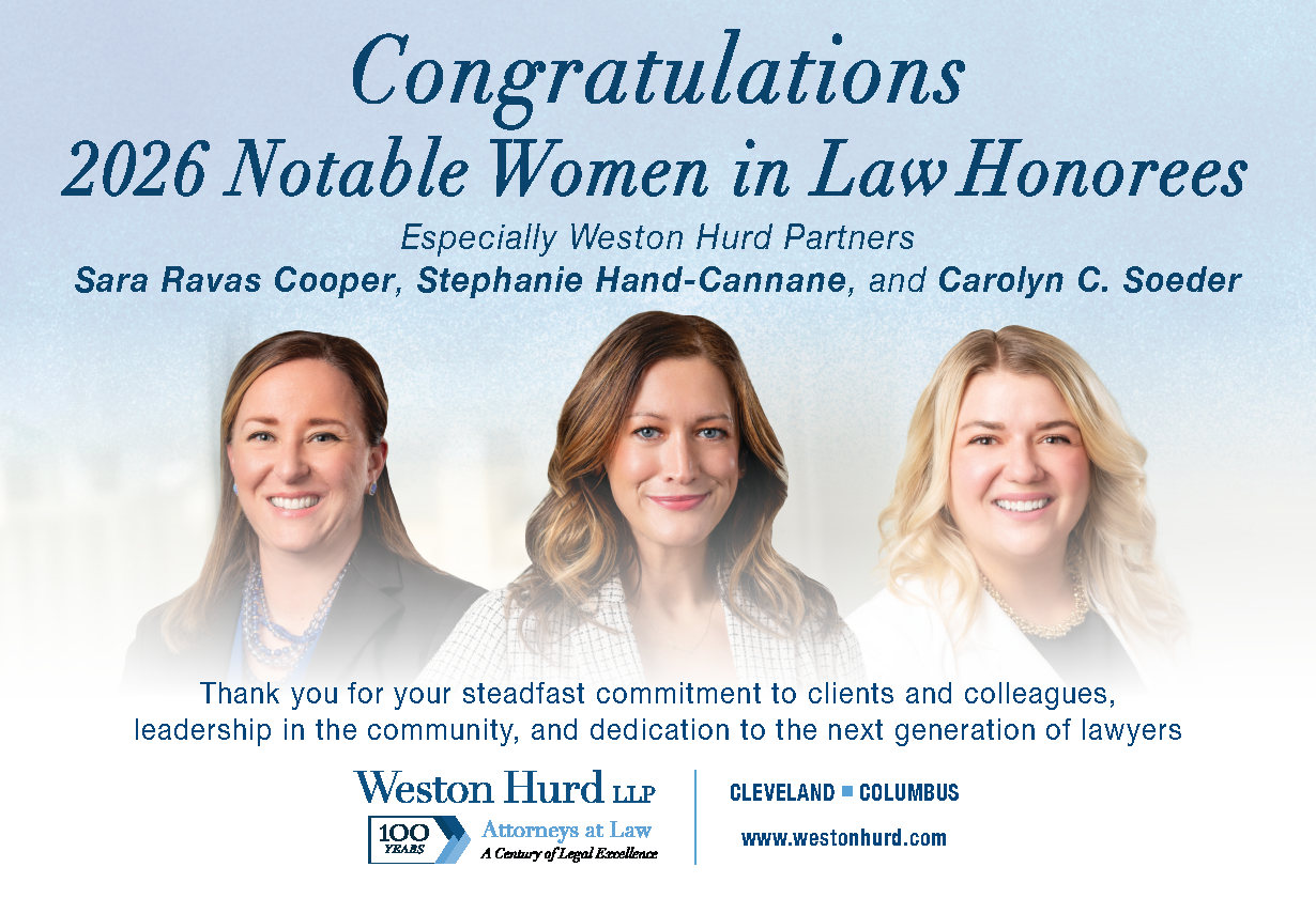 Congratulations Sara Ravas Cooper, Stephanie Hand-Cannane, and Carolyn C. Soeder on being named Crain’s Cleveland Business 2026 Notable Women in Law. Selected through a peer nomination and editorial review process, their recognition reflects not only individual achievement, but also their steadfast commitment to clients and colleagues, leadership in the community, and dedication to the next generation of lawyers.